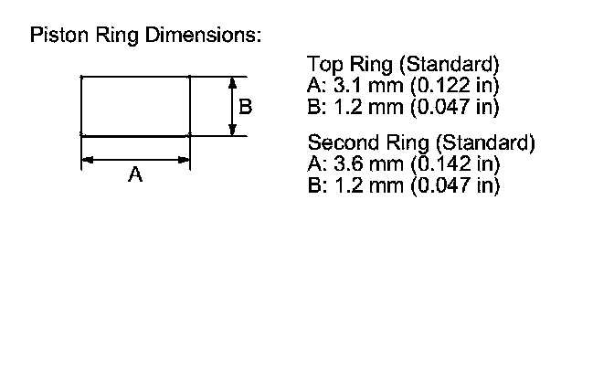 3. Clean all the ring grooves thoroughly with a squared-off broken ring, or a ring groove cleaner with a blade to fit the piston grooves. File down the blade, if necessary. The top ring and second ring grooves are 1.2 mm (0.047 in) wide, and the oil ring groove is 2.8 mm (0.110 in) wide. Do not use a wire brush to clean the ring grooves, or cut the ring grooves deeper with the cleaning tool.