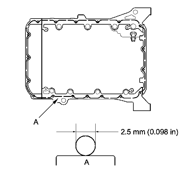 - Apply a 2.5 mm (0.098 in) diameter bead of liquid gasket along the broken line (A).