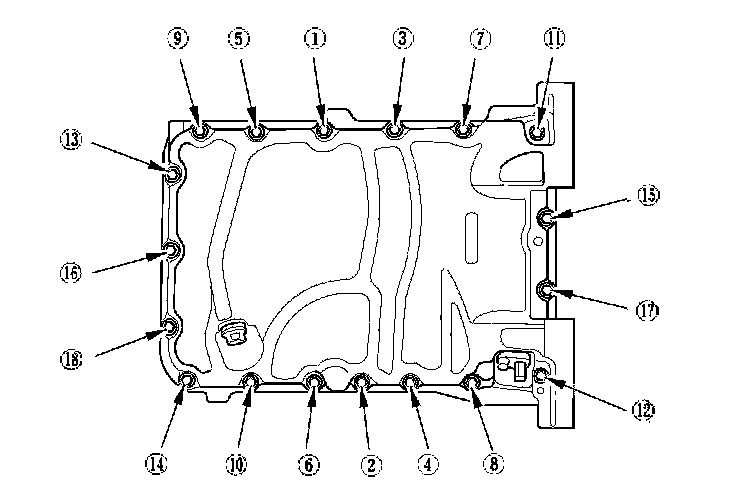 5. Tighten the bolts in three steps. In the final step, torque the bolts, in sequence, to 12 Nm (1.2 kg-m, 9 lb-ft).