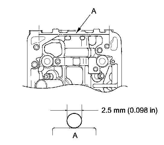 - Apply a 2.5 mm (0.098 in) diameter bead of liquid gasket along the broken line (A).