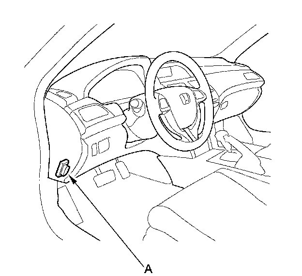 1. With the ignition switch in LOCK (0), connect the HDS to the data link connector (DLC) (A) located under the driver's side of the dashboard.