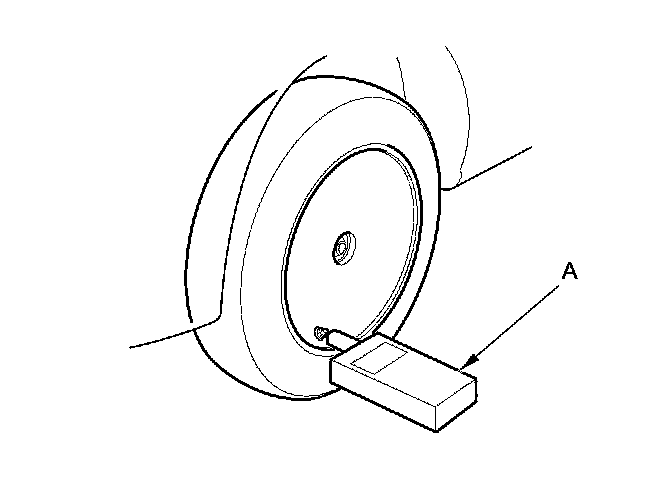 6. Hold the TPMS tool (A) near the valve stem of one wheel, and memorize the tire pressure sensor ID by following the screen prompts on the HDS.