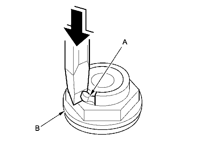 1. Using a chisel, cut the lock tab (A) off the countershaft locknut (B).