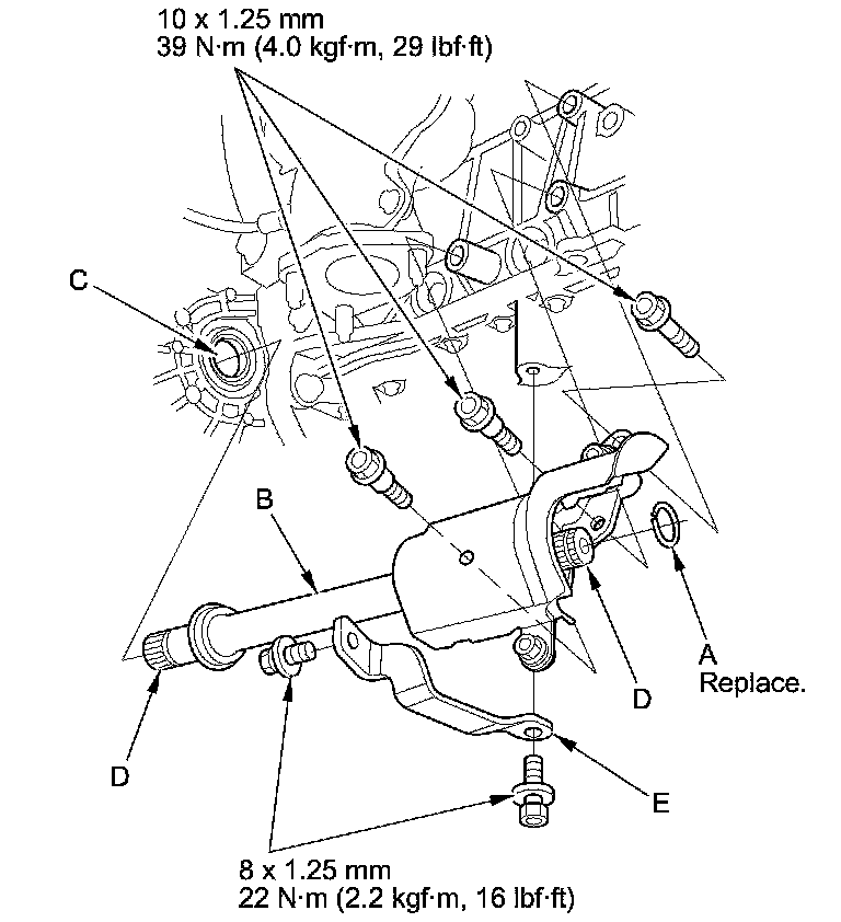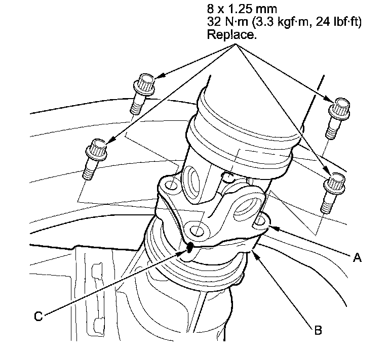 21. Check the oil seal (C), and replace it if it is damaged A/T Differential Oil Seal Replacement.