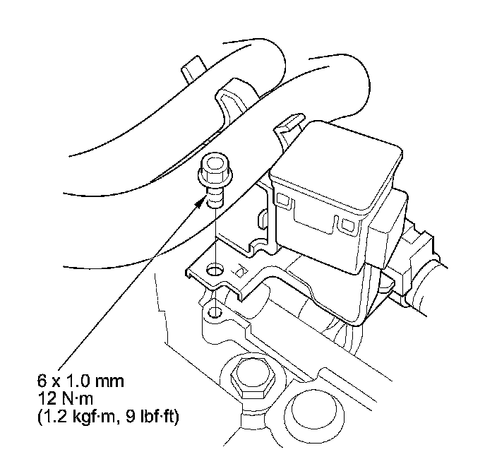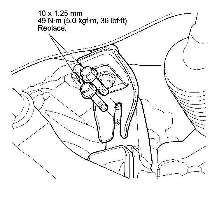 57. Tighten the upper transmission mount bracket bolts and nut to 59 Nm (6.0 kg-m, 44 lb-ft).