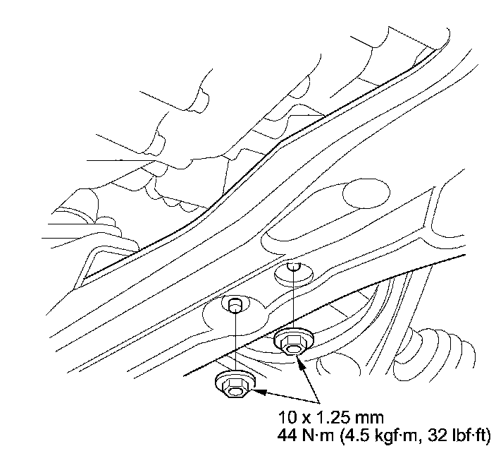 31. Replace the front subframe middle rubber mount bolts, then tighten the bolts to the specified torque on both sides.