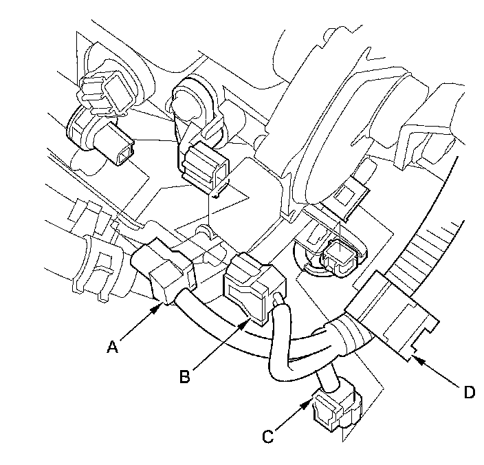 - Transmission fluid pressure switch B (3rd clutch) connector (A)