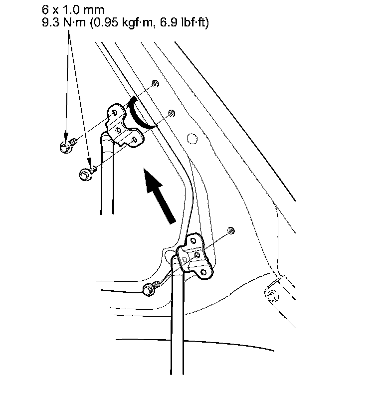 89. While an assistant supports the hood, and reinstall the driver's side hood support strut bracket with the bolts to proper location.