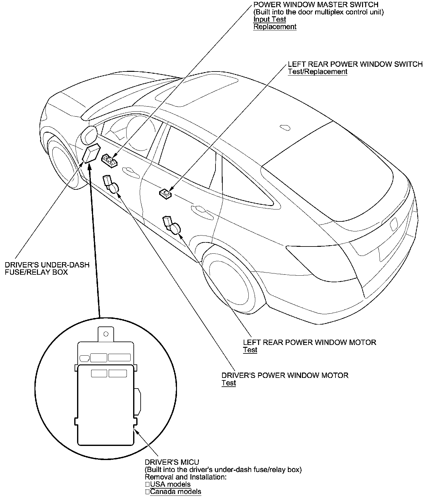 Power Windows Component Location Index
