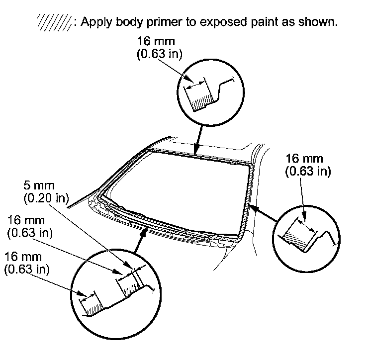 - Never touch the primed surfaces with your hands. If you do, the adhesive may not bond to the windshield properly, causing a leak after the windshield is installed.
