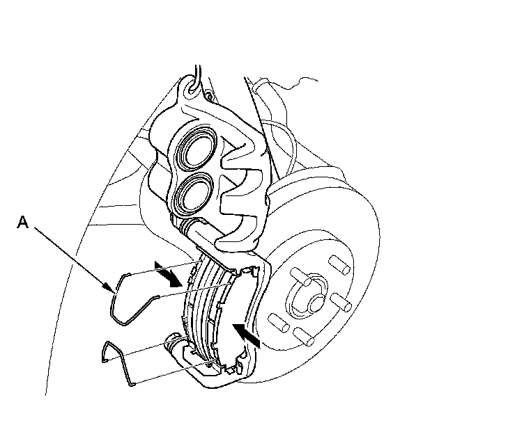 8. Remove the pad retainers (A).