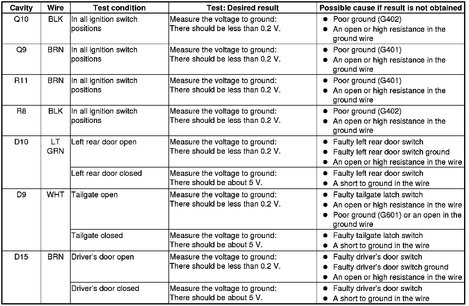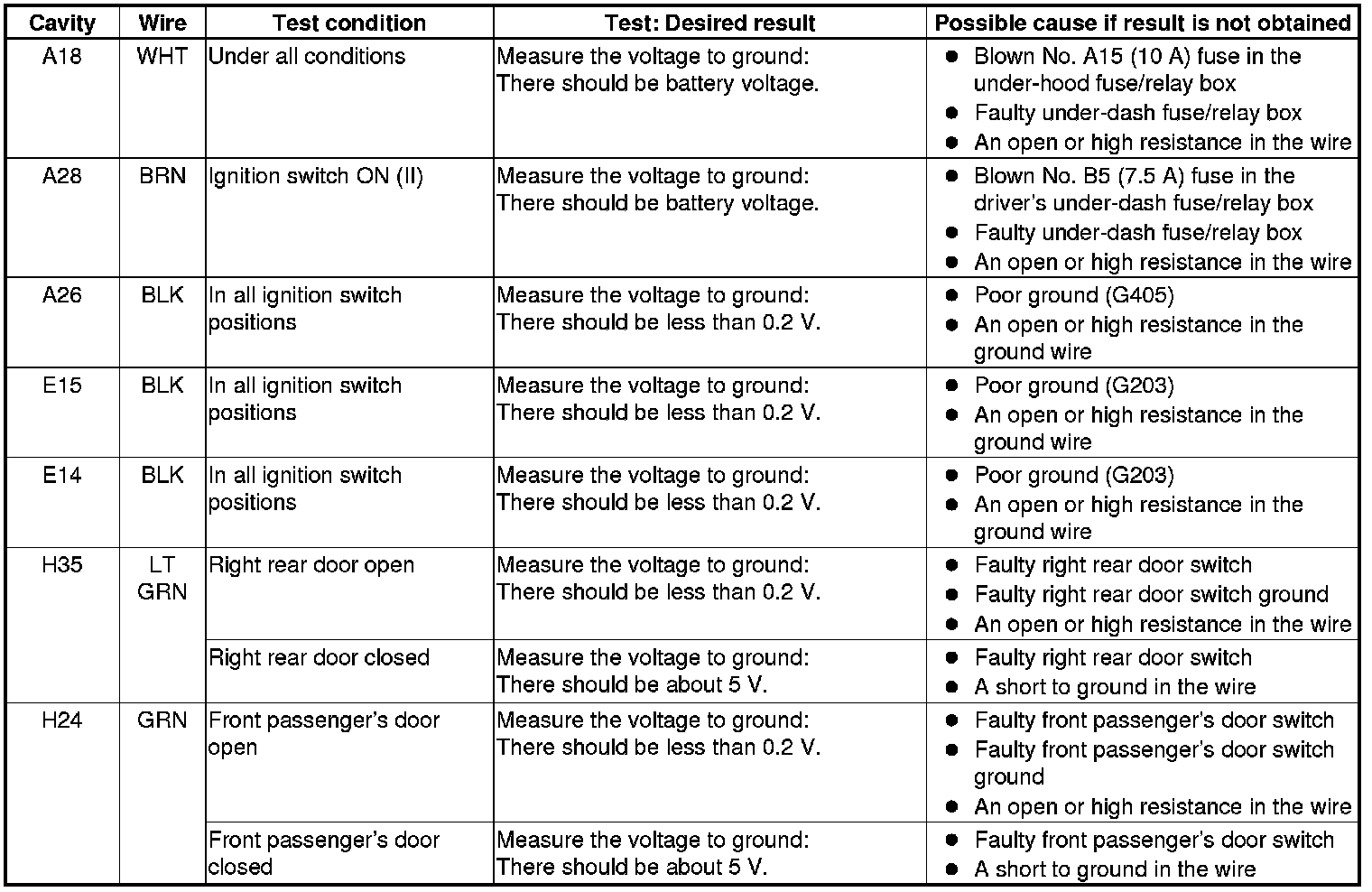 10. Reconnect the connectors to the passenger's under-dash fuse/relay box, and do the following input tests: