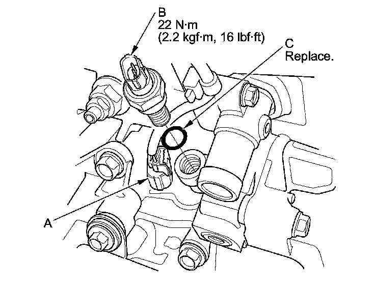 5. Install the rocker arm oil pressure sensor with a new O-ring (C).