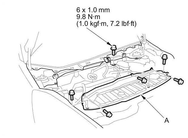 2. Remove the bolts, then remove the under-cowl panel (A).