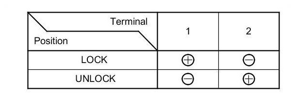 4. Check actuator operation by connecting power and ground according to the table. To prevent damage to the actuator, apply battery voltage only momentarily.