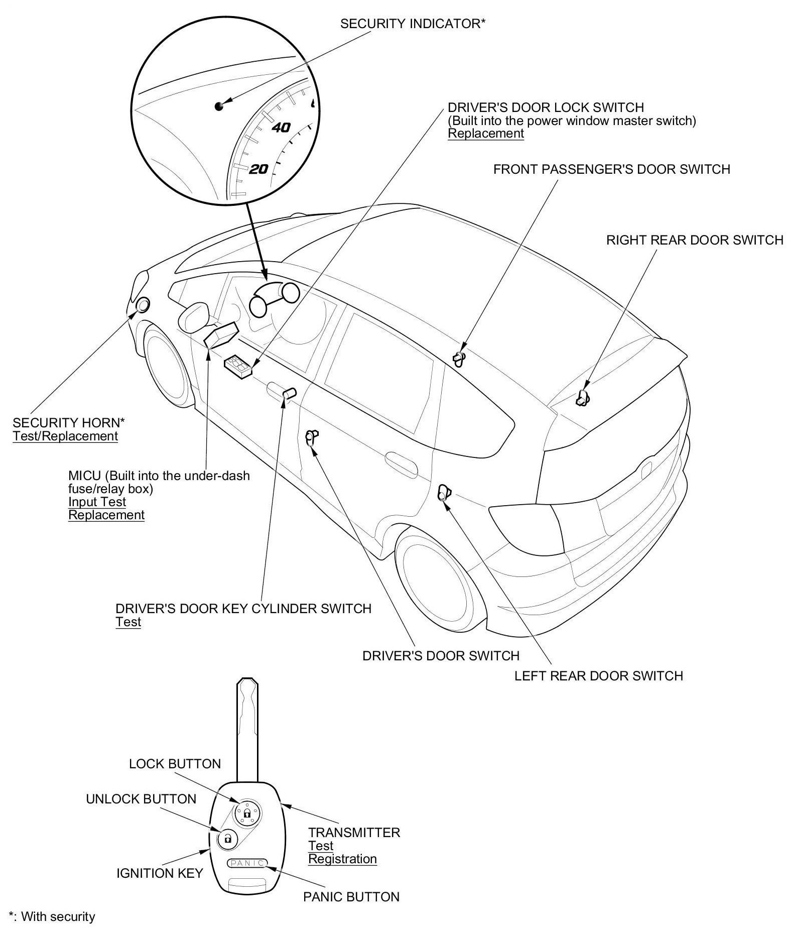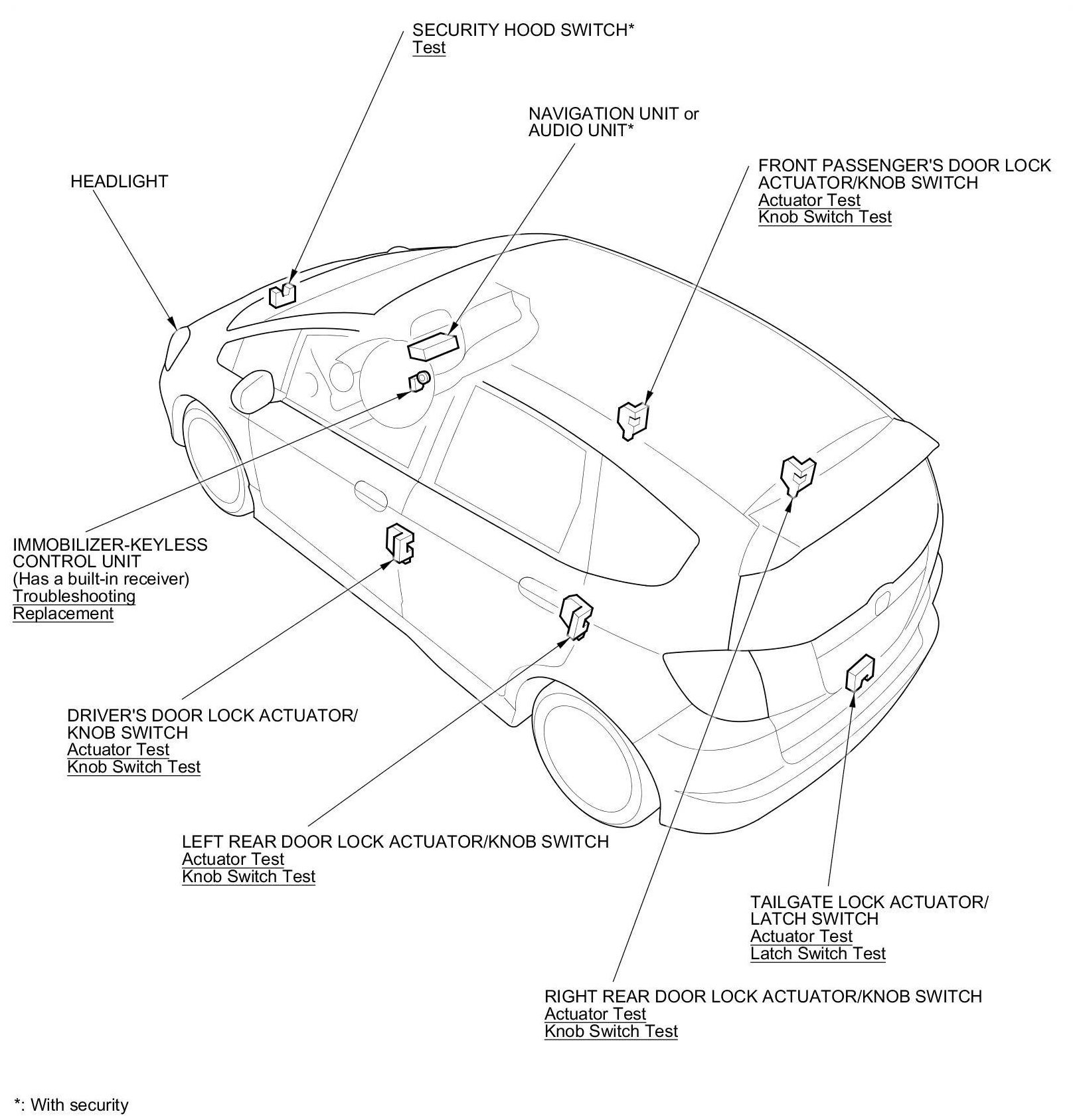 Keyless/Power Door Locks/Security System Component Location Index