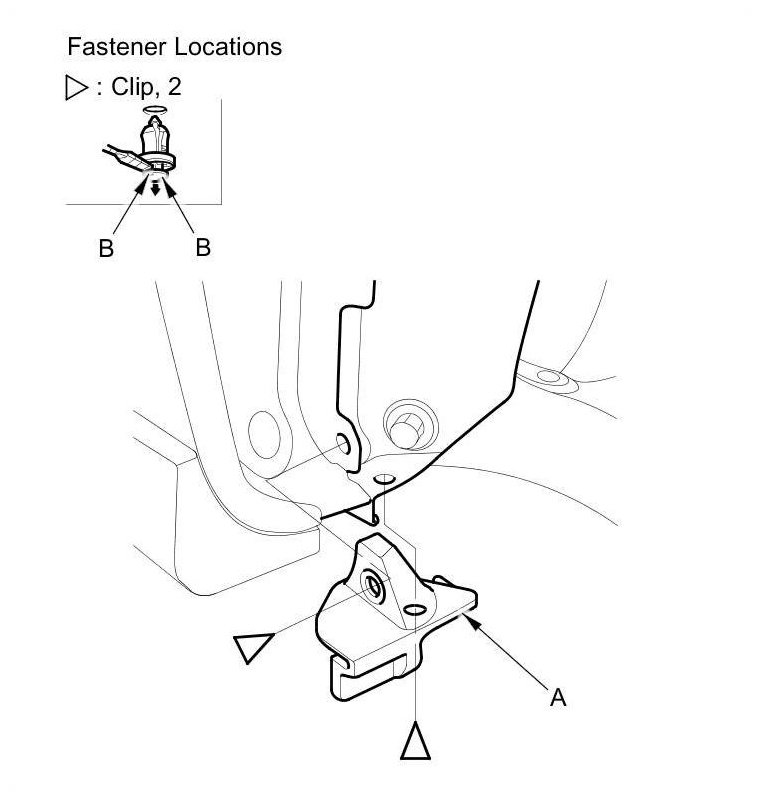 NOTE: To release the clips, pry up on the center pin at the notch (B).