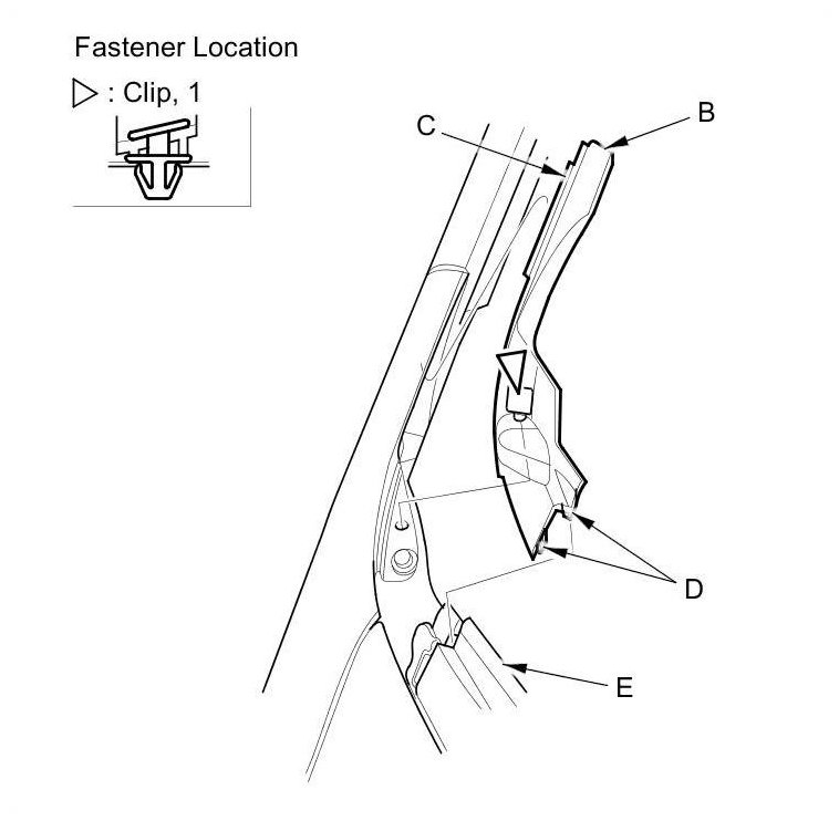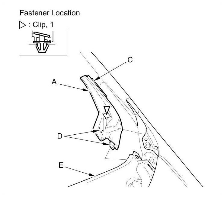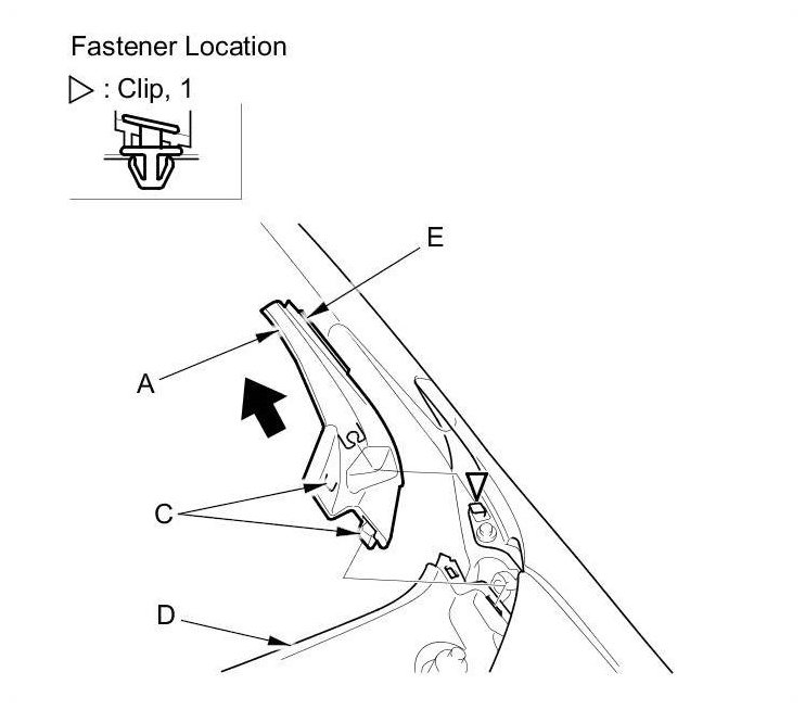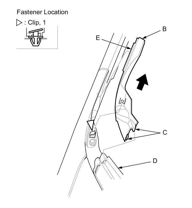 3. Carefully slide the cover up along the A-pillar to release it from the clip.