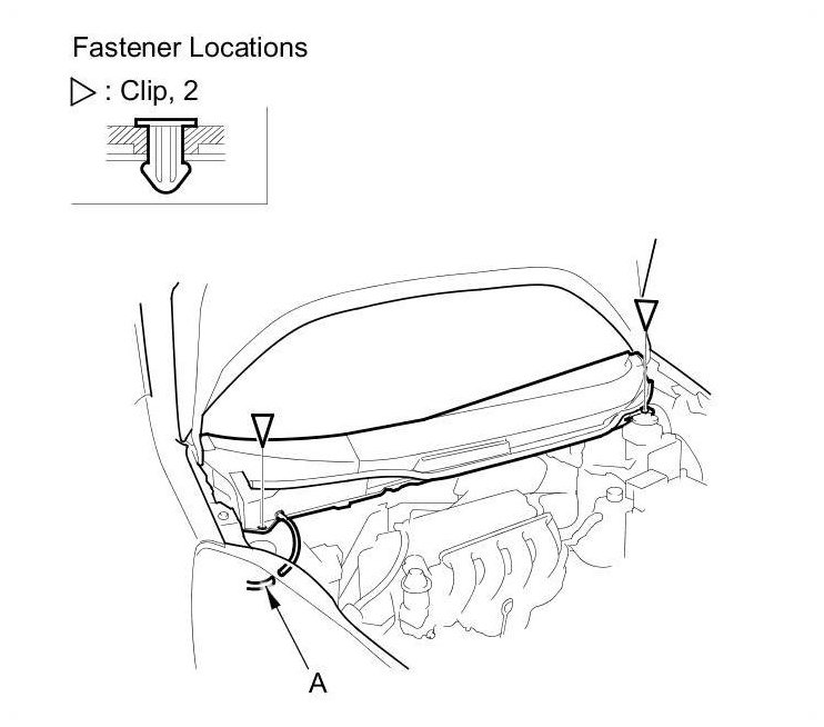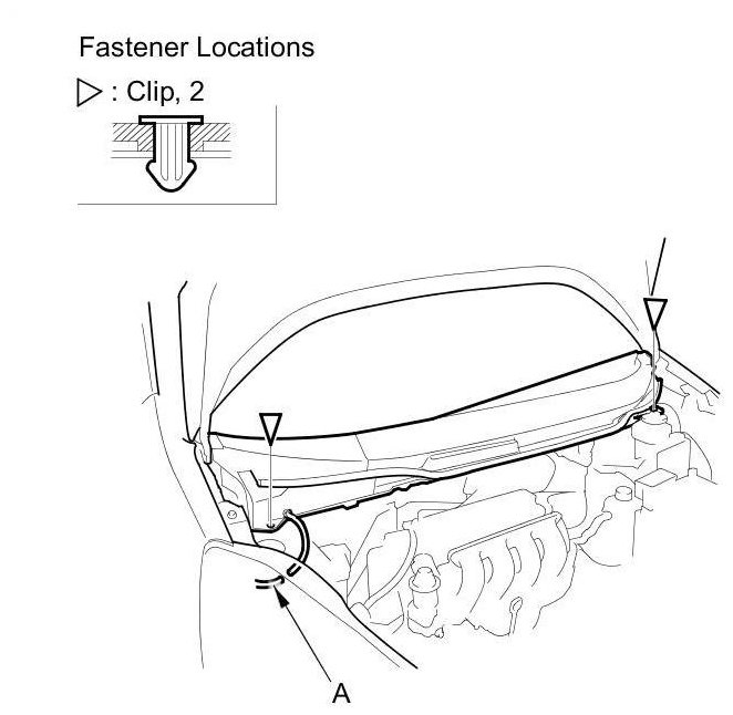 2. Install the clips on the cowl cover, then connect the windshield washer tube (A) securely.