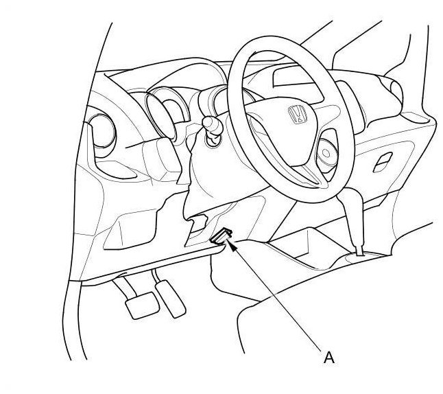 2. Connect the HDS to the data link connector (DLC) (A) located under the driver's side of the dashboard.