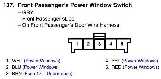 Front Passenger's Power Window Switch Connector View