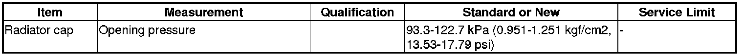 Radiator Cap Specification(s)