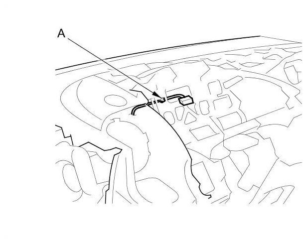 3. On the front of the driver's side of the dashboard, detach the harness clip (A).