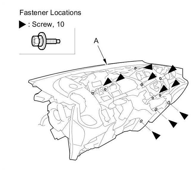 8. From the front of the dashboard (A), remove the screws.