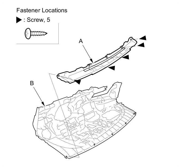 10. Remove the screws, then remove the dashboard duct (A) from the dashboard (B).