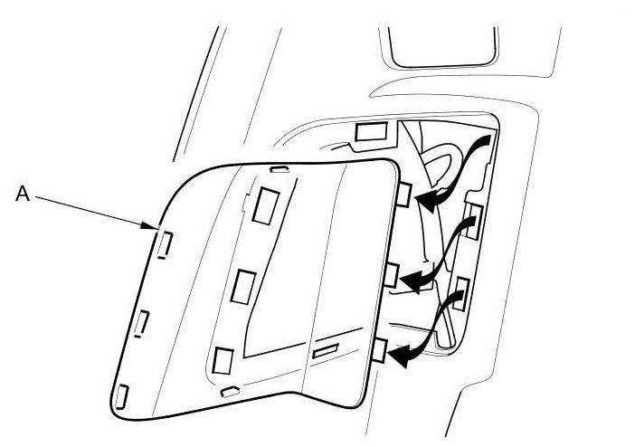 2. Pull the retaining spring (A) away from the bulb (B), then remove the bulb.