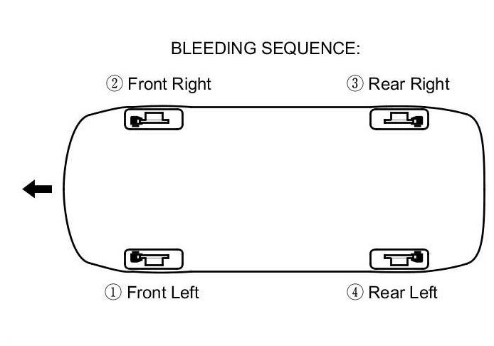 NOTE: Bleed the calipers or the wheel cylinders in the sequence shown.