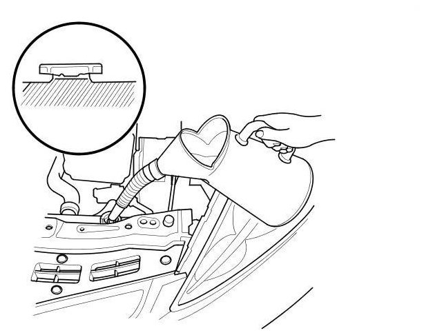 9. Pour Honda Long Life Antifreeze/Coolant Type 2 into the radiator up to the base of the filler neck.