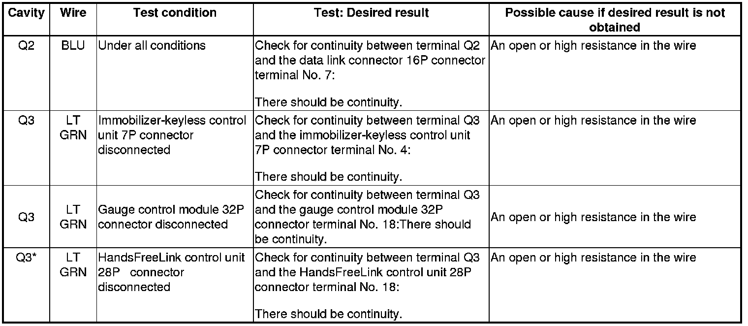 6. Reconnect the connectors to the under-dash fuse/relay box, turn the ignition switch to ON (II), and do these input tests at the following connectors.