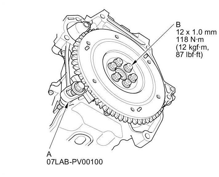 mounting bolts (B) in a crisscross pattern in several steps.