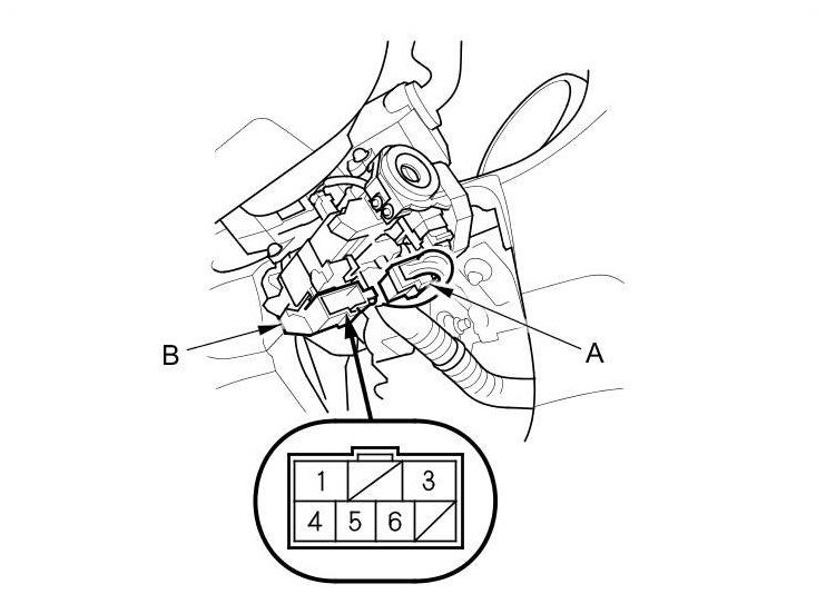 3. Disconnect the 7P connector (A) from the ignition switch (B).