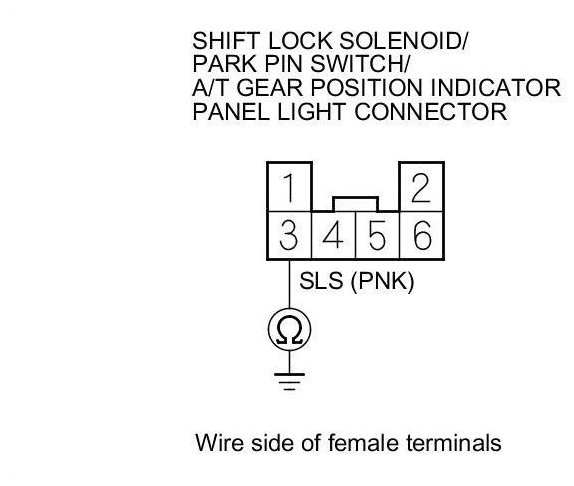NOTE: Do not connect the positive battery terminal to the connector terminal No. 3 or you will damage the diode inside the shift lock solenoid.