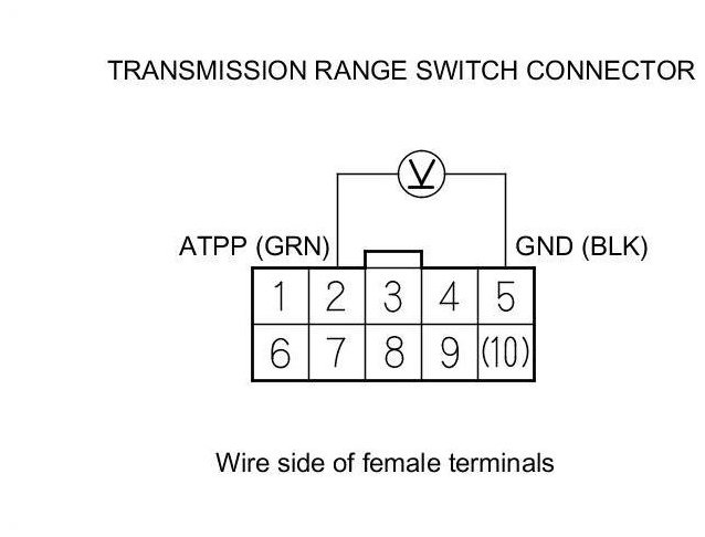 21. Measure the voltage between transmission range switch connector terminals No. 2 and No. 5.