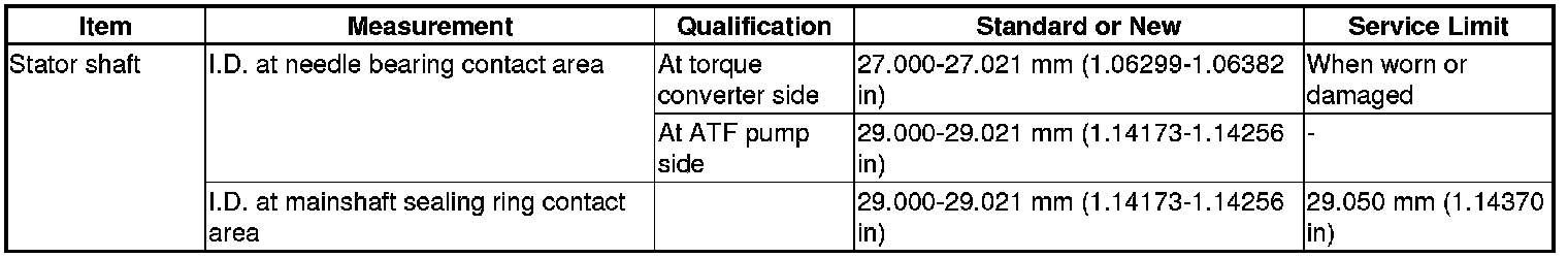 Stator Shaft Specification(s) (A/T)