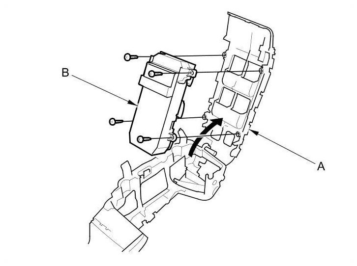 3. Remove the screws and replace the power window master switch (B).