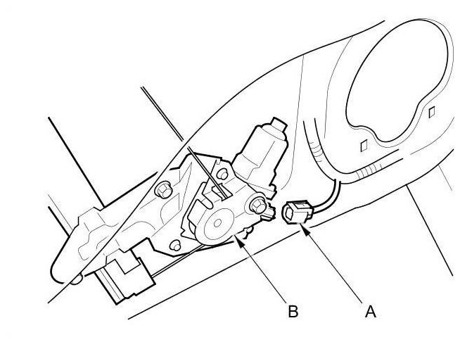 5. Disconnect the 6P connector (A) from the driver's power window motor (B).