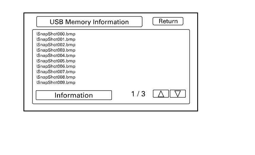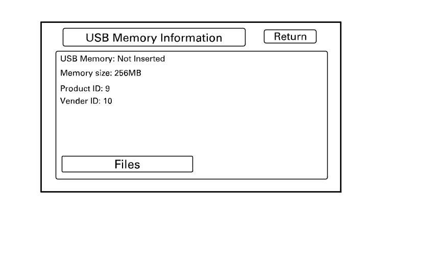 If the USB memory device is connected to the USB port, the screen displays the USB memory size, the Product ID, Vender ID, and connection status (Inserted/Not Inserted).