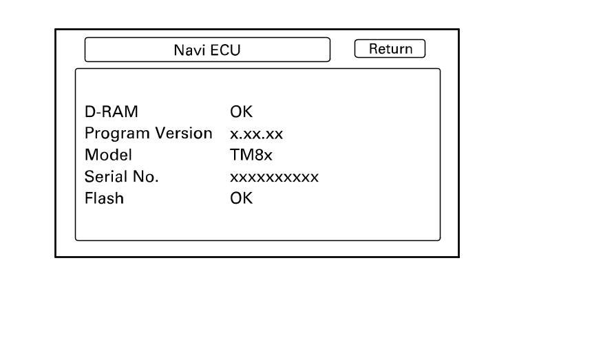 - Flash: Displays the result of the access to the flash memory (OK/NG). If it is NG, replace the audio-navigation unit Audio-Navigation Unit Removal/Installation.
