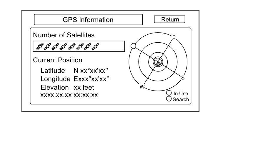 - The Number of Satellites box shows the number of acquired satellites (maximum of 12). It should contain three or more icons. If not, go to for GPS icon is white or not shown Symptom Troubleshooting.