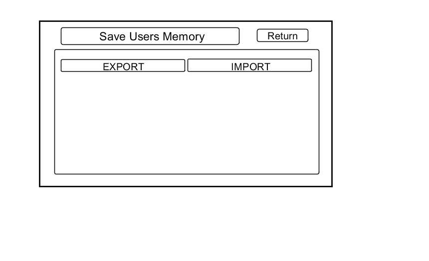 When replacing the audio-navigation unit, this function allows the technician to transfer the customer's personal data to the new audio-navigation unit. The transferred information includes their setup settings and personal addresses. The dealer inserts a USB device into the USB port, and then selects the Save Users Memory function. The two functions in this diagnostic screen are Export and Import. Export saves the customer's data to the USB device, and Import moves the USB device files to the new audio-navigation unit.