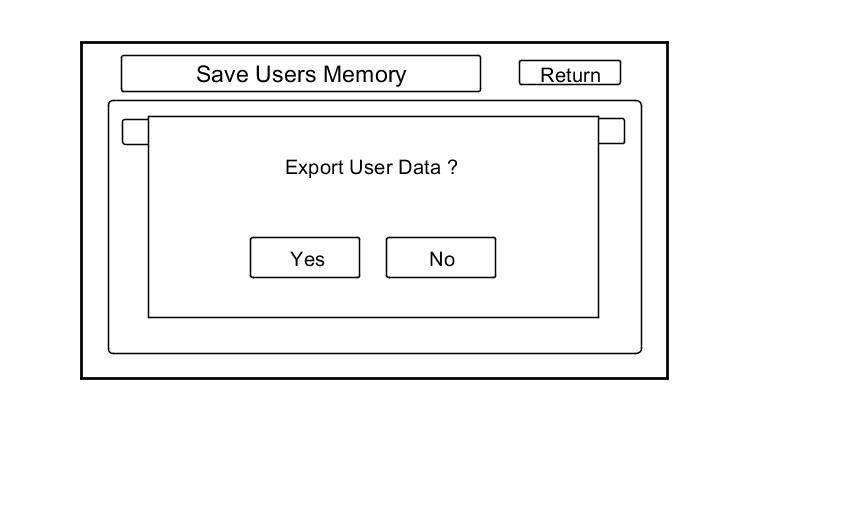 1. Select Export button to move the customer's data from the original audio-navigation unit to the USB device. Select YES on the Export User Data Confirmation screen. The process takes only a couple of seconds. The system stores .DAT files on the USB device.