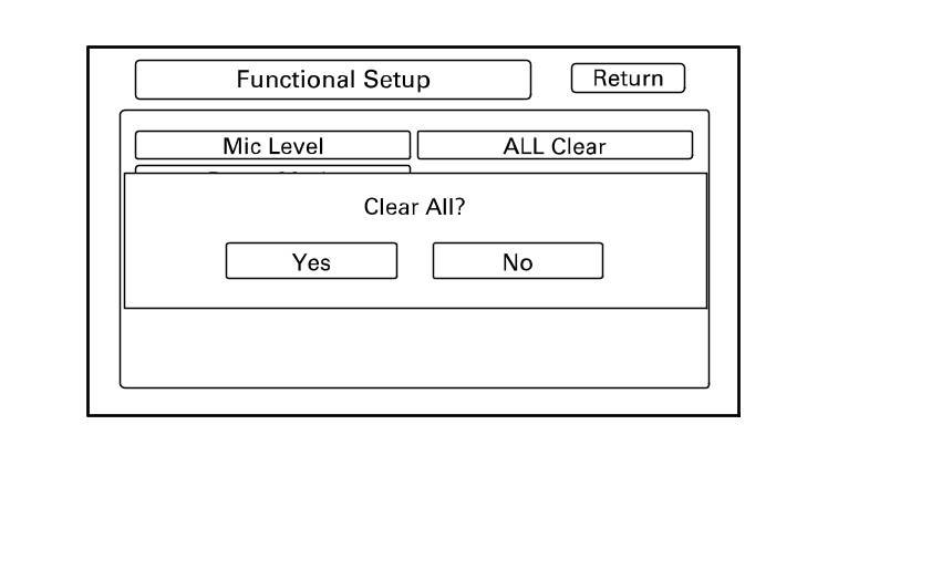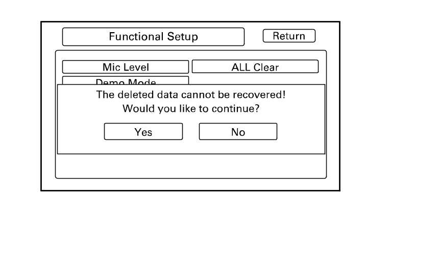 If you select All Clear, a confirmation screen appears. When Yes is selected, a second confirmation screen appears.