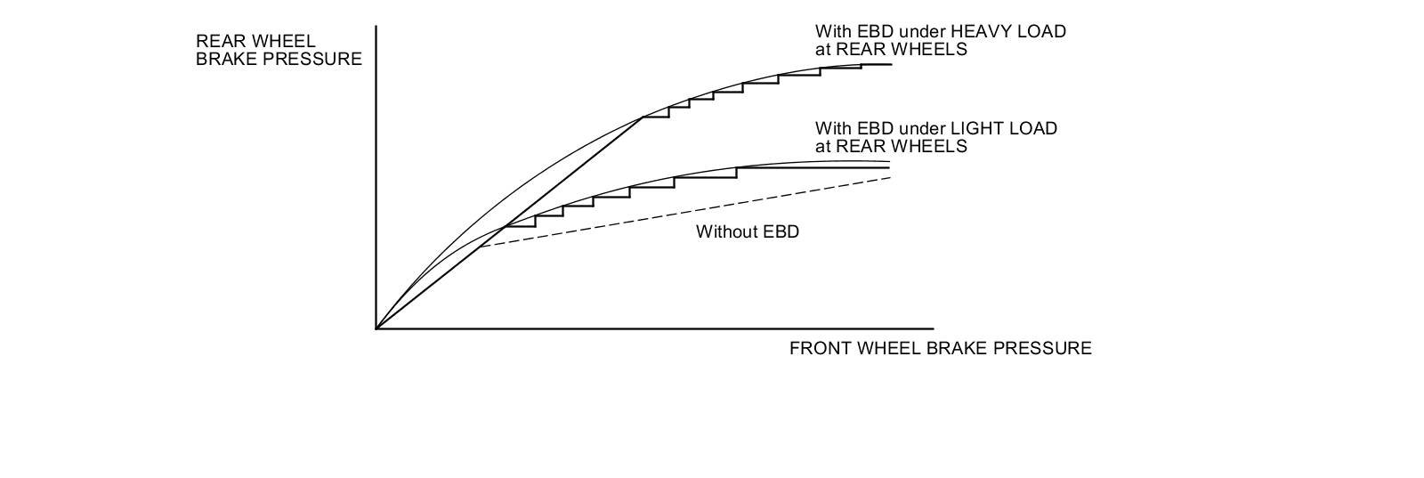 The EBD feature helps control vehicle braking by adjusting the rear brake force in accordance with the rear wheel load before the ABS operates. Based on the wheel speed sensor signals, the control unit uses the modulator to control the rear brakes individually. When the rear wheel speed is less than the front wheel speed, the VSA modulator-control unit retains the current rear brake fluid pressure by closing the inlet valve in the modulator. As the rear wheel speed increases and approaches the front wheel speed, the VSA modulator-control unit increases the rear brake fluid pressure by momentarily opening the inlet valve. This whole process is repeated very rapidly. While this is happening, kickback may be felt at the brake pedal, you may also hear a muted buzzing sound from the VSA modulator-control unit.This is normal.