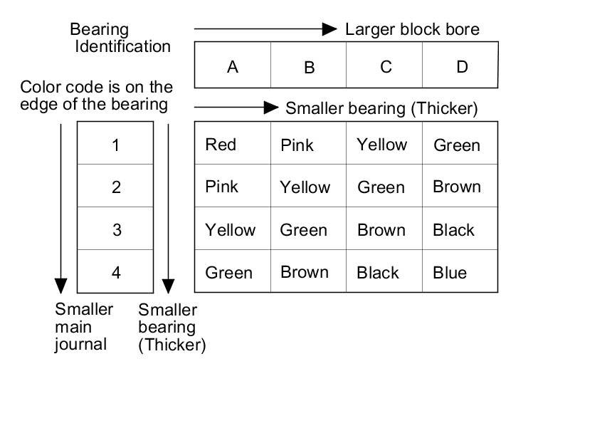 Use them, and the numbers or bars stamped on the crankshaft (codes for main journal size), to choose the correct bearings. If the codes are indecipherable because of an accumulated of dirt and dust, do not scrub them with a wire brush or scraper. Clean them only with solvent or detergent.