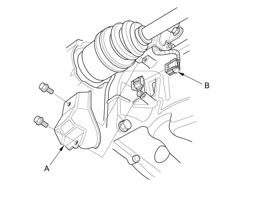 8. Remove the CKP sensor cover (A), then disconnect the CKP sensor connector (B).