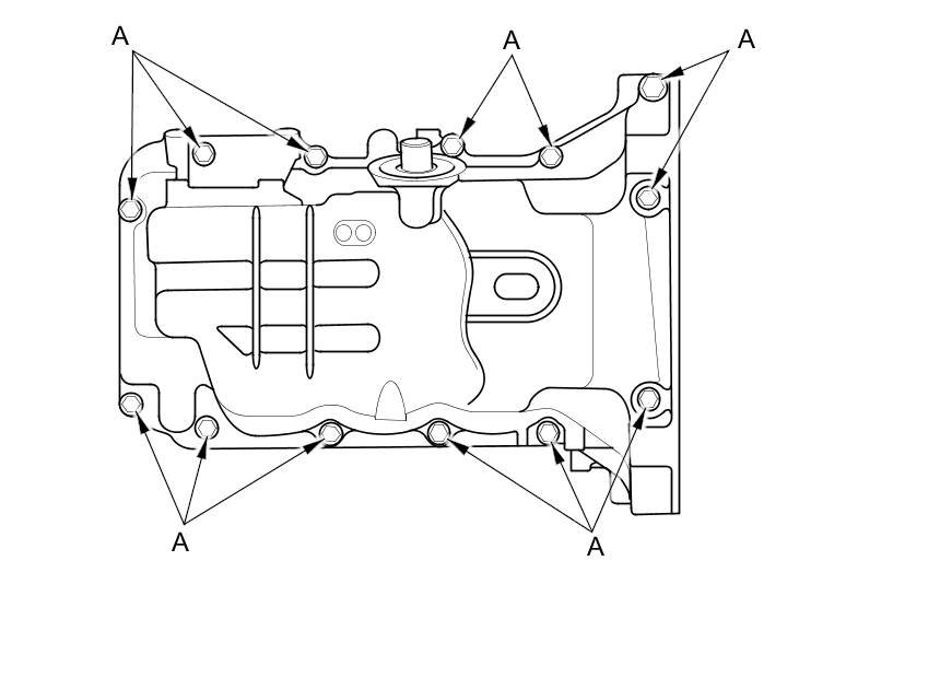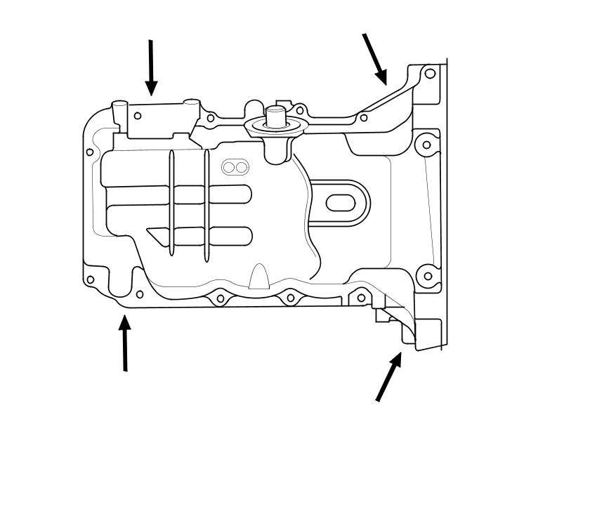 11. Using a flat blade screwdriver, separate the oil pan from the engine block in the places shown.